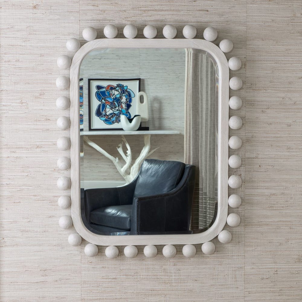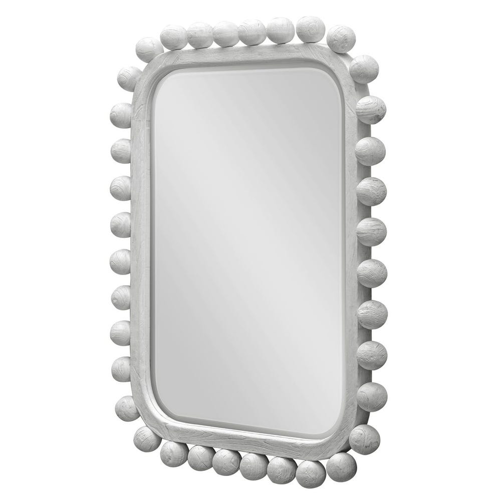 Hand-painted solid wood spheres frame this mirror with a charming, textured edge, finished in natural wood. The mirror itself features a generous 1" beveled edge and can be displayed horizontally or vertically to suit your space.