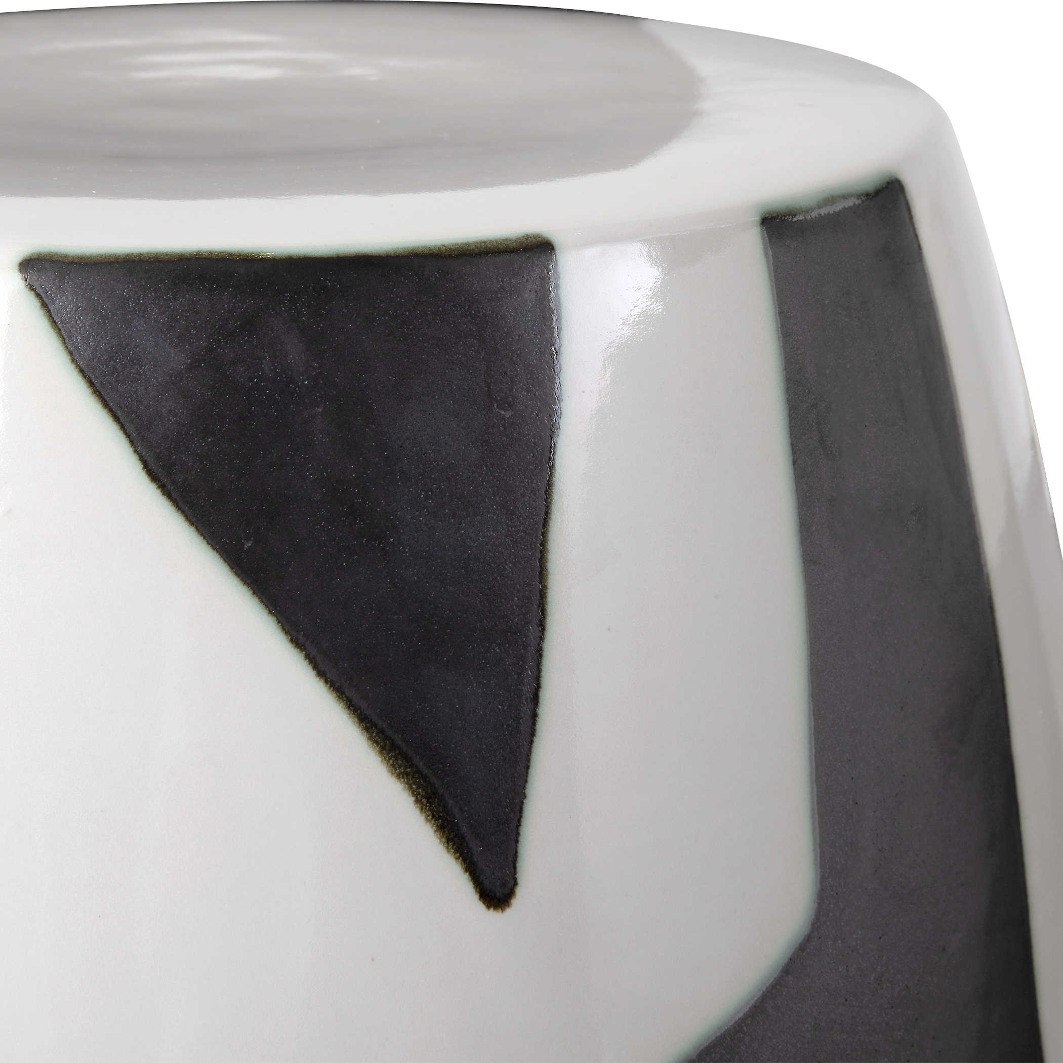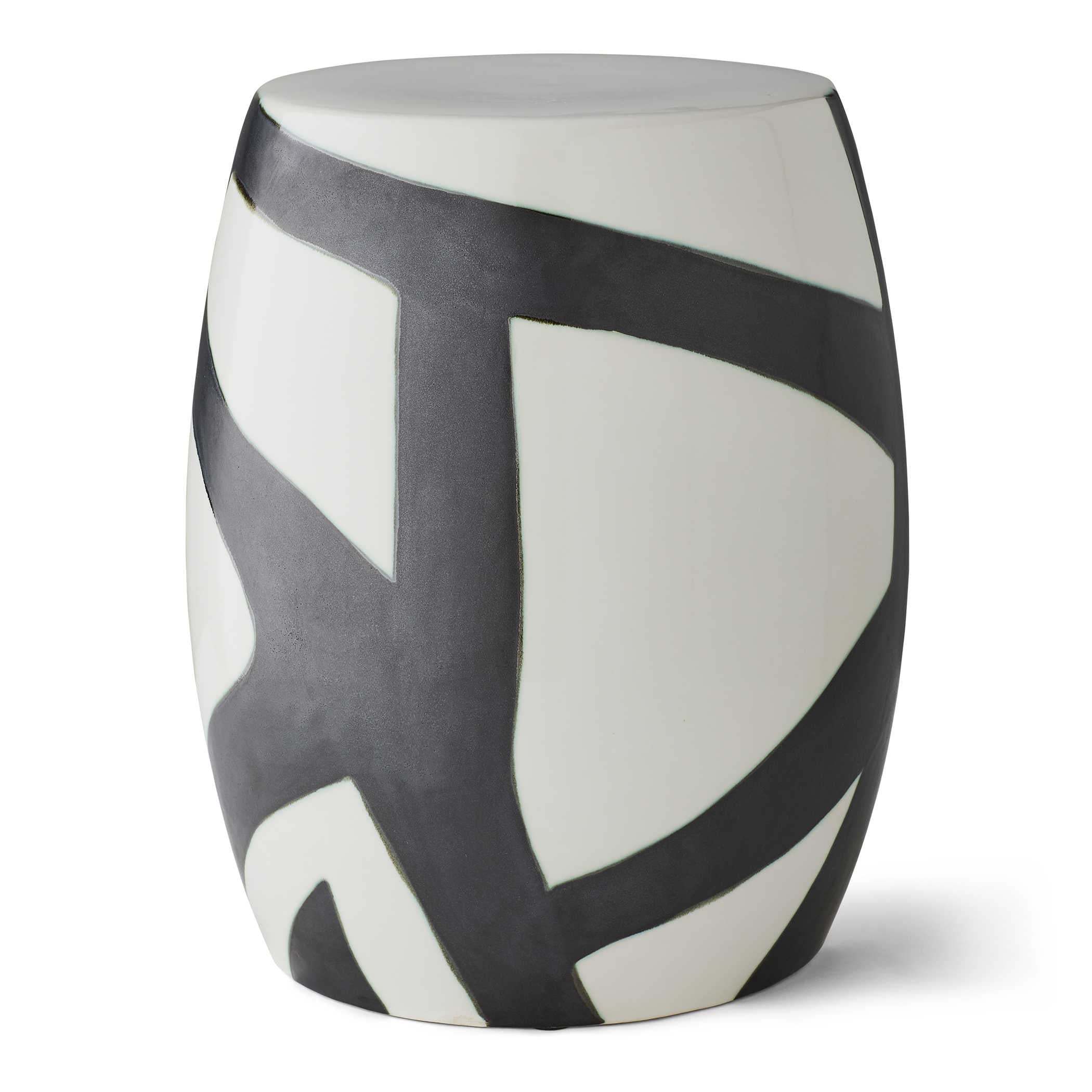 Crafted from ceramic, the Figurative Garden Stool features a design inspired by abstract expressionist oil paintings, with a bold gloss white and charcoal black finish. Not only does it serve as an ideal drink table, but it also adds an elegant artistic touch to enhance your favorite chair.