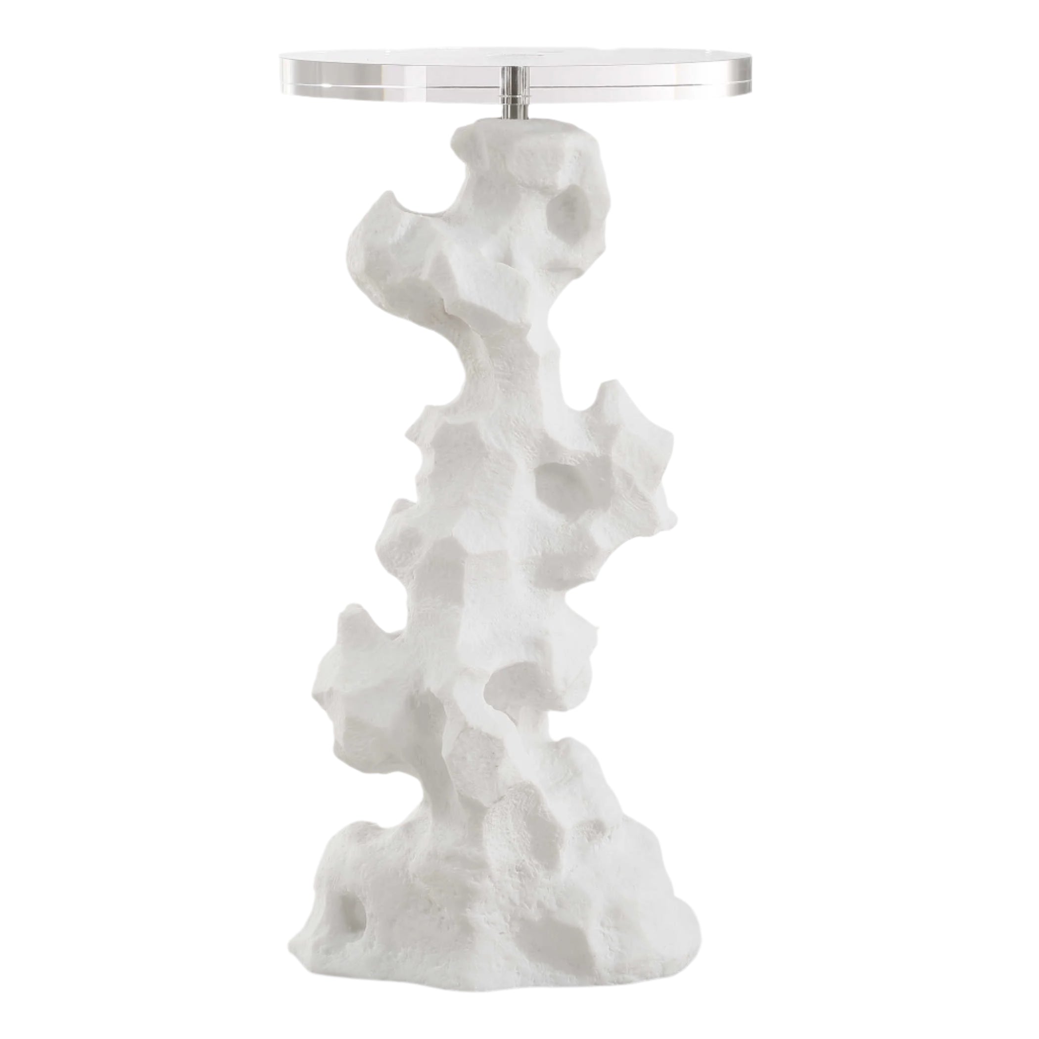 Crafted from man-made white stone that beautifully replicates the elegance of Thassos marble, the Remnant Accent Table seamlessly blends form and function. With its striking design, this table serves as both a stylish surface and a modern work of art for any space. The thick crystal top adds a touch of sophistication, making it a perfect centerpiece for your home. Whether used as a side table or a statement piece, the Remnant Table brings timeless luxury and contemporary style to your decor.