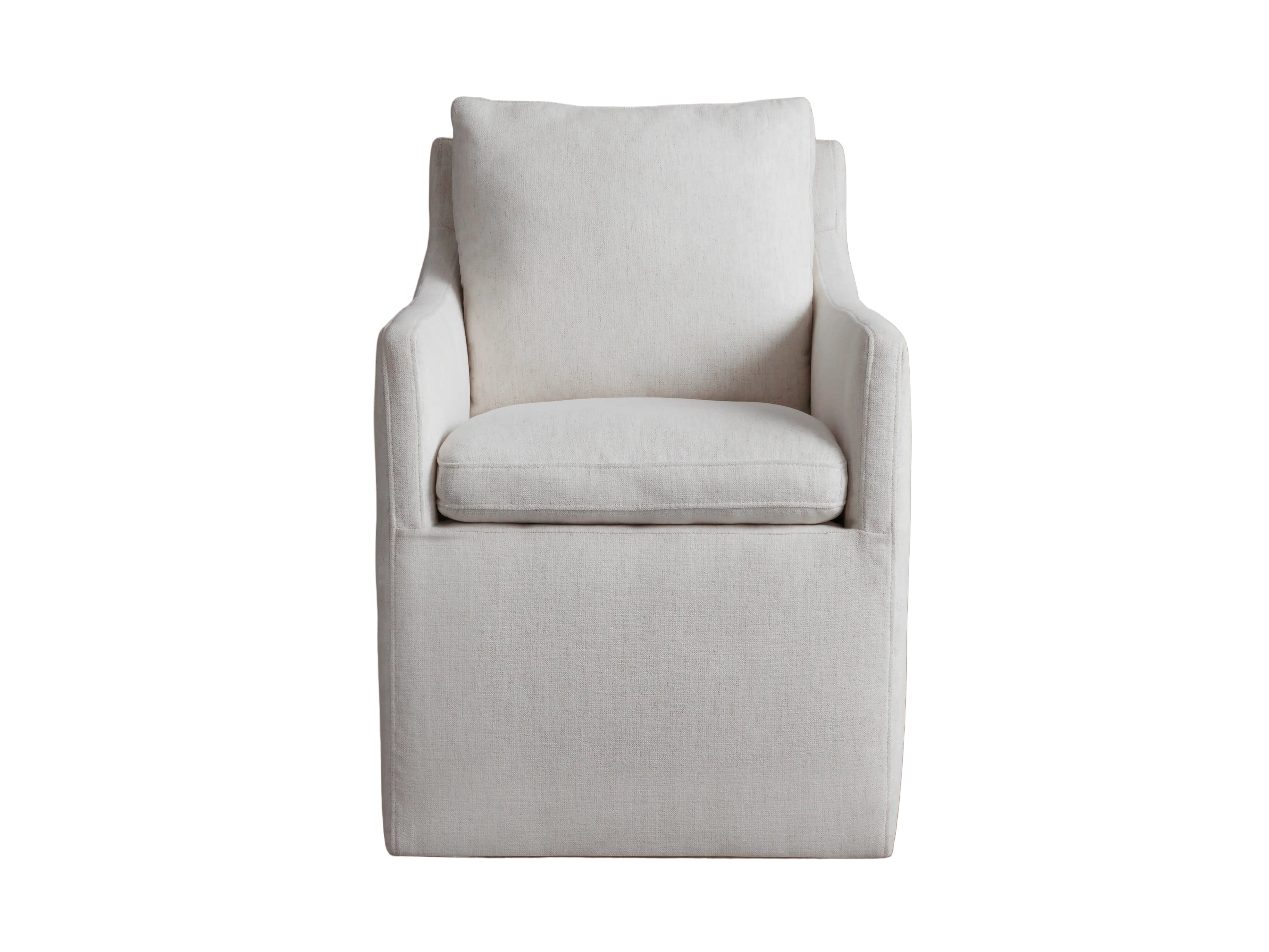 Enhance your dining area with the Samantha Dining Chair, inspired by nautical design and crafted for exceptional comfort in richly textured upholstery. Its softly sloped arms add a relaxed touch, while hidden casters make it easy to move wherever extra seating is needed.
