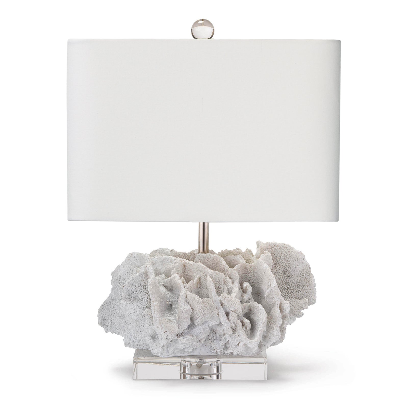 Add a touch of elegance to your space with our Caribbean Coral Table Lamp. The crystal base and elegant linen shade provide a sophisticated look, while the Earth sustainable reproduction coral adds a luxurious touch. Bring the beauty of the Caribbean to your home with this stunning lamp.